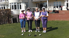 Once group photos had been taken, Starter, Duncan, announced each group in turn onto the tee. The Blairgowrie ladies, were Fiona Johnston (c), Jacqui Landsburgh, Miriam Rooney, Eileen McMurray, Jennifer Livingstone, Caroline Dracup, Moria Stewart and Margaret McGlashan.